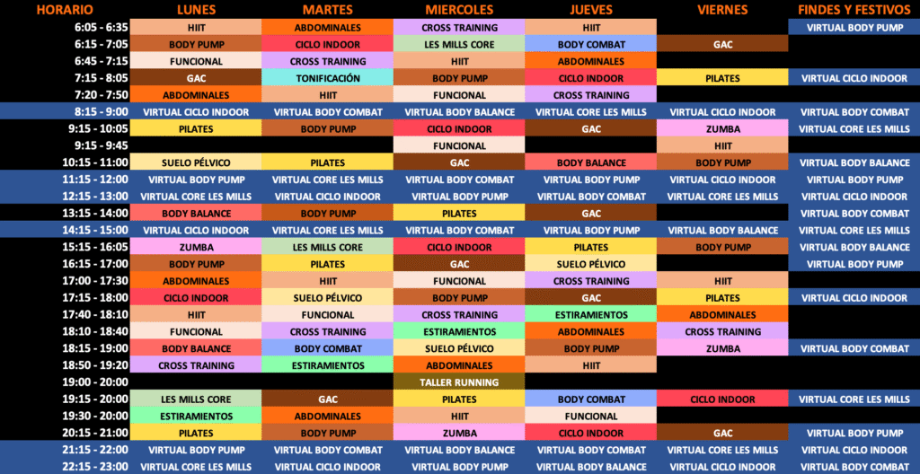 Horario amplio, 365 días al año, más de 40 clases a la semana, monitores específicos y el buen rollo para que trabajes en tu versión más strong.
